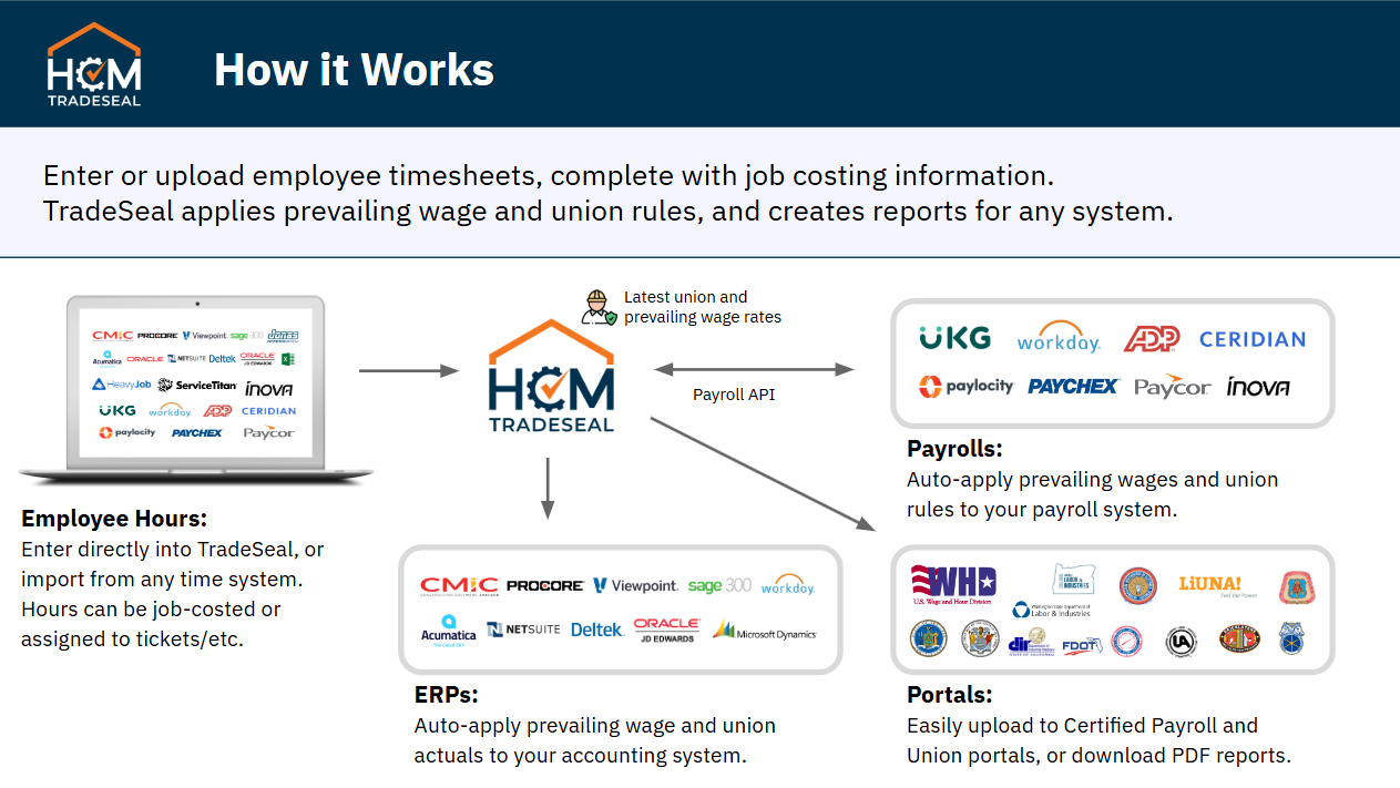 - TradeSeal can push actuals—including union and prevailing wage adjustments—into your ERP